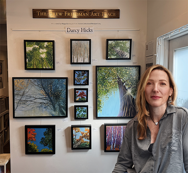 The Westport Book Shop is pleased to welcome local artist Darcy Hicks as guest exhibitor for the month of November at the Book Shop’s Drew Friedman Art Place. Darcy is exhibiting a collection of tree paintings.